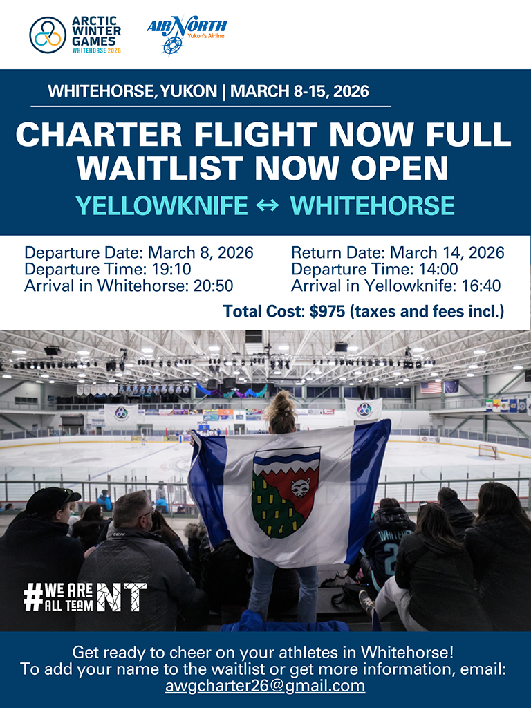 The excitement for the 2026 Arctic Winter Games is building across the Northwest Territories, and the support for Team NT has been nothing short of incredible. Our parent and supporter charter flight to Whitehorse is now fully booked, a powerful reflection of how deeply our communities stand behind our athletes. Families, friends, and supporters from across the territory have come together to make sure our youth feel the pride, encouragement, and energy of the North every step of the way.